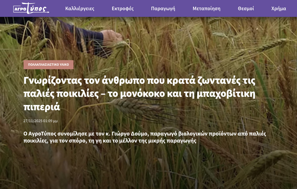 Συνομιλήσαμε με την ιστοσελίδα Αγροτύπος, για την παραδοσιακή βιολογική καλλιέργεια, την μπαχοβίτικη πιπεριά, τη γη και το μέλλον της μικρής παραγωγής. Διαβάστε περισσότερα στο σχετικό άρθρο.
